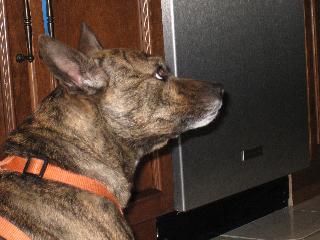 Perhaps I should bring home a different model. I kind of fancy the look of these thigh-highs for dogs: