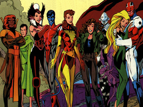 Excalibur was kind of like a cross between The Avengers and X-Men, but based in the UK and a bit more whimsical. As you can see, the team was comprised of (from left to right) A Thundercat, Simon Cowell, Celine Dion, Nightcrawler, a mullet enthusiast, Sarah Jessica Parker, a big eared robot, a hallucination, an aerobics instructor, and Captain Britain. Or something like that. The point is, they all look good! Even that mullet isn’t looking too bad. Alan Davis draws beautiful people.
