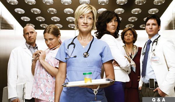 I’d heard lots of great things about Nurse Jackie and had read all about Edie Falco’s superb and award-winning portrayal of the titular character + the clips that they would show on awards shows were always tantalizing. But I really didn’t know much about the show beyond some basic plot points. I had no idea, for instance, that its format was thirty minutes. I thought it would be an hour-long drama–like The Sopranos. But, it’s more like Sex and the City (before the last SATC movie made a whore of that groundbreaking show’s legacy). It’s a thought-provoking dramedy with a wonderful supporting cast and alternating gasps and gags. It was difficult to choose which aspect of the program to hone in on. Seriously, all of the actors are adorable/sexy/completely awesome in their own way. But–even though it’d be easy to write about grouchy Falco and her dykey Nurse Jackie hairdo, or the lovable glass-eyed lug Thor, or the super hot and well-heeled Brit Dr. O’ Hara–I’m going with the dark horse.